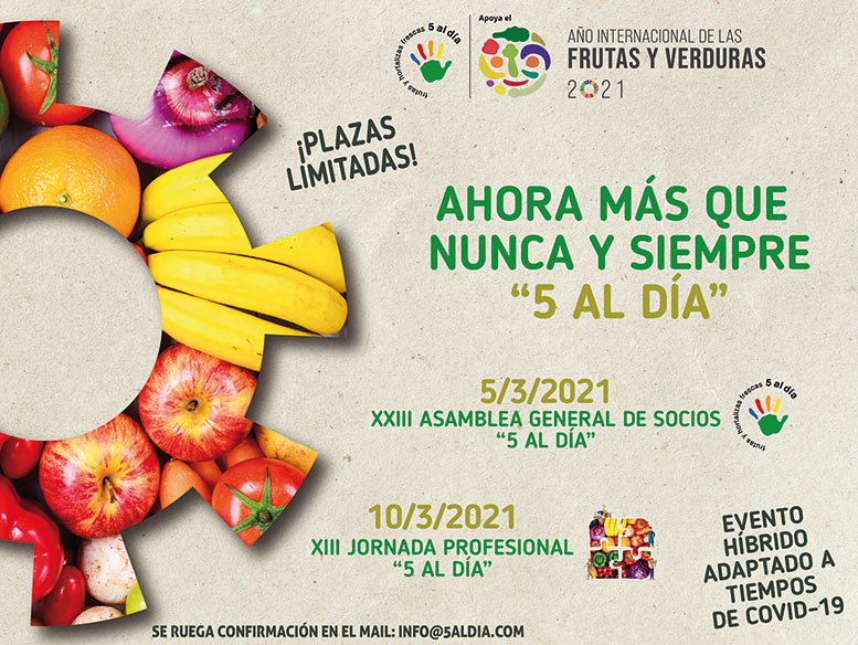 El segundo evento de la asociación, la XIII Jornada Profesional “5 al día”, tendrá lugar el próximo día 10 de marzo. El salón de actos del Centro Administrativo de Mercamadrid será de nuevo el escenario que acogerá este acto de manera híbrida reuniendo a todos los eslabones de sector hortofrutícola, así como, empresas y personas físicas de otros sectores, medios de comunicación y entidades públicas. La jornada se podrá seguir en streaming y también de manera presencial con todas las medidas de seguridad y garantías higiénico sanitarias que marca la Ley en esta situación de pandemia.