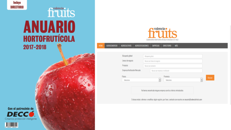 Los suscriptores de Valencia Fruits recibirán junto con el periódico del 4 de septiembre el Anuario Hortofrutícola 2017-2018 que incluye un completo Directorio del sector