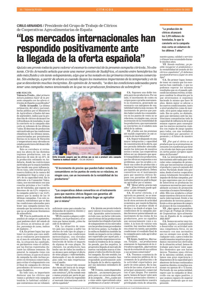 VF. ¿Qué espera el presidente del Grupo de Trabajo de Cítricos de Cooperativas Agro-alimentarias de España de la campaña 2022-2023?