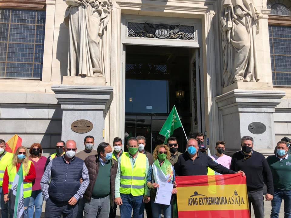 Los representantes de APAG Extremadura Asaja han registrado la tabla reivindicativa del campo extremeño. / ASAJA