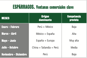 Europa mantendrá su fuerte concentración de oferta entre marzo y junio. Alemania seguirá liderando el mercado del espárrago blanco, mientras que se prevé que Italia y Francia consoliden su presencia en verde y blanco. Esta situación genera una competencia intensa en abril–mayo, con el riego de que se produzca un solapamiento de campañas. Al igual que el espárrago español, estamos hablando de un producto premium adecuado para mercados exigentes.