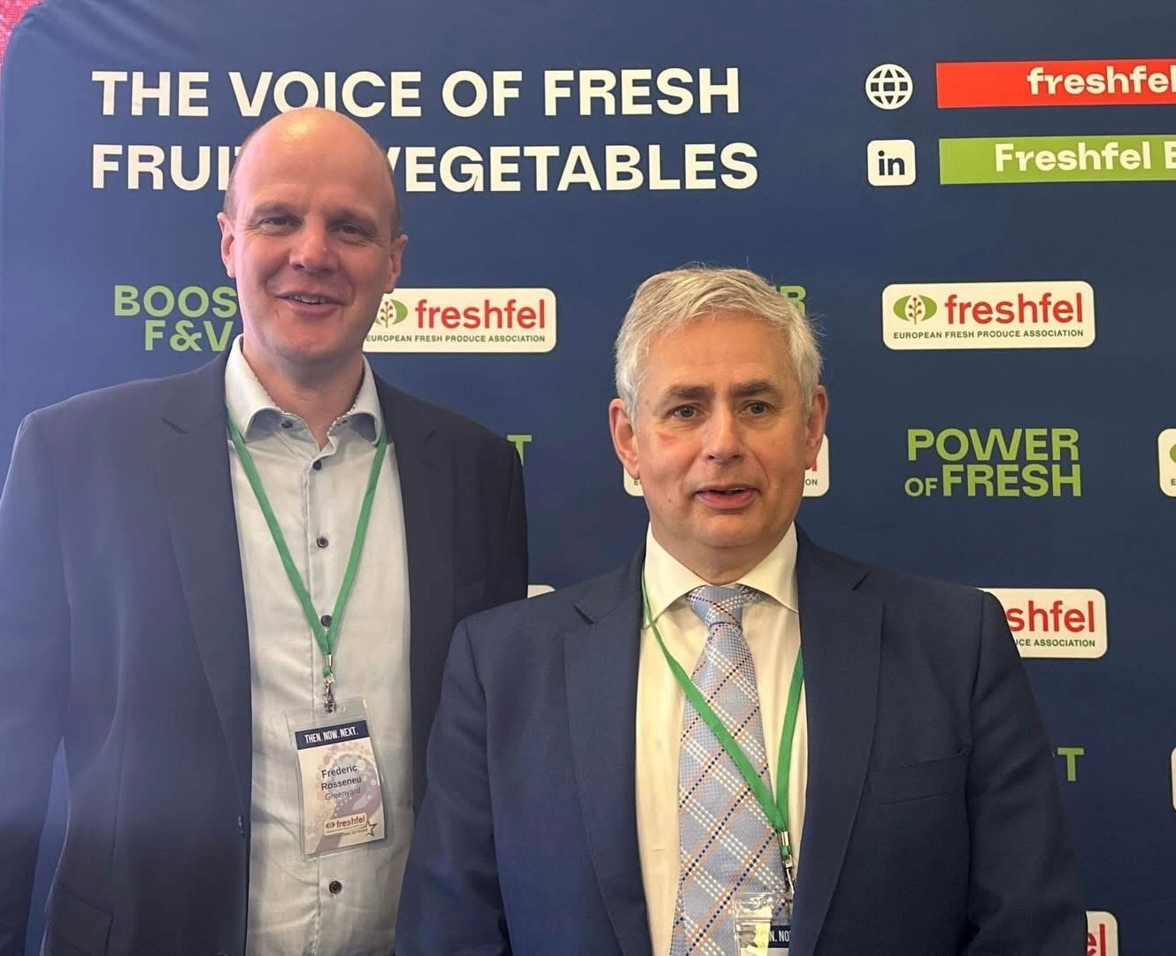 En la imagen, Frederic Rosseneu, el nuevo presidente de Freshfel Europe y Philippe Binard, delegado general de la asociación. / FRESHFEL
