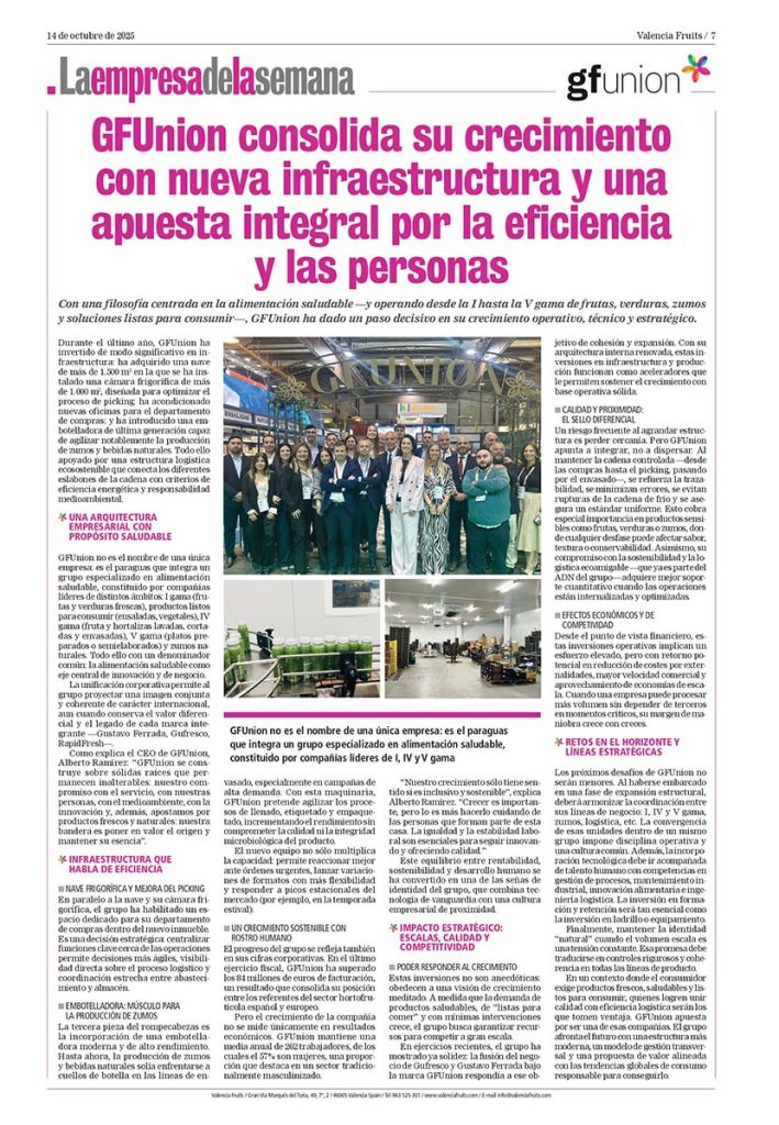 Con una filosofía centrada en la alimentación saludable —y operando desde la I hasta la V gama de frutas, verduras, zumos y soluciones listas para consumir—, GFUnion ha dado un paso decisivo en su crecimiento operativo, técnico y estratégico