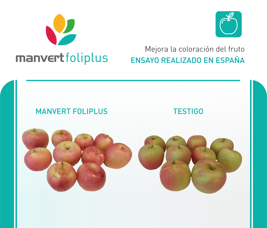 -En nectarina y manzana Manvert Foliplus junto con otros tratamientos de la firma aumentó el color en todo el fruto.