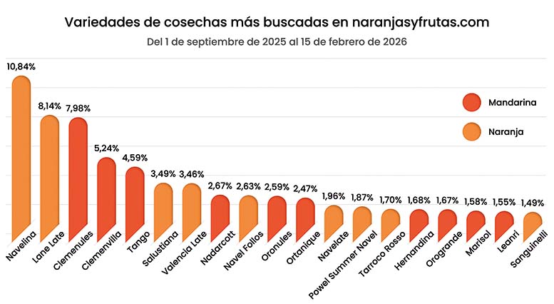 Según la plataforma Naranjasyfrutas.com, las cosechas de estas variedades son las que mas interés han despertado en la primera mitad de la campaña 25-26