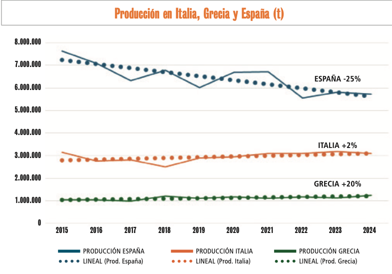 Grecia ha crecido ligeramente, Italia está estable y España ha perdido un 25% de su producción en sólo una década.