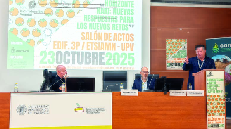 El foro se desarrolló bajo el título ‘Horizonte Kaki: Nuevas respuestas para los nuevos retos’, organizado por el Colegio Oficial de Ingenieros Técnicos Agrícolas y Graduados de Valencia y Castellón (COITAVC) y Phytoma, y reafirmó la necesidad de reforzar el control biológico con más enemigos naturales para hacer frente a las principales plagas.