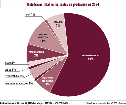 Estimación para 15 t/ha; 23,341€/ha-año, cv. SANTINA. / AGROMILLORA *Se calcula la mano de obra a 1.000 h/ha-año
