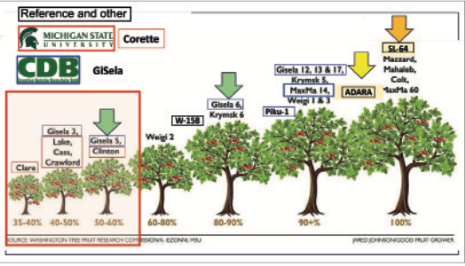 Comparación esquemática del vigor inducido por distintos portainjertos de cerezo. / Whashington Fruit Tree Research Comission & Iezonni MSU