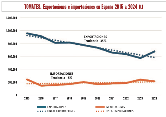 En definitiva, podemos hablar de una estabilidad en la producción de tomate de mesa en España, que ha realizado un gran cambio en los últimos años gracias a la innovación varietal que le está permitiendo competir con todo lo que supone Marruecos gracias a sus ventajas en costos. El incremento del cultivo orgánico y la agricultura sostenible está ayudando a mantener la posición del tomate español en las mesas europeas.