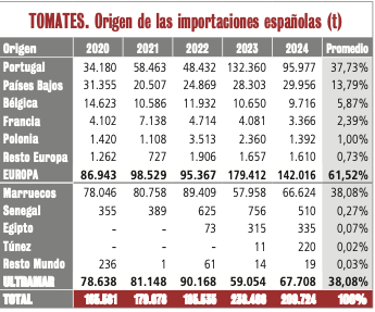 Por otro lado, de las importaciones que llegan desde Marruecos, el 94% se realizan de octubre a abril, que coincide plenamente con el momento álgido de la campaña de producción española. Mientras que las importaciones que llegan de Portugal y del resto de Europa realizan el 83% desde mayo a octubre por lo tanto mayoritariamente en momentos bajos de la producción española.