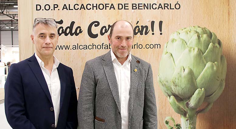 Víctor Morera (a la derecha) junto a Nacho Lluch, director técnico y responsable de Calidad de la DOP Alcachofa de Benicarló, en Fruit Attraction. / ÓSCAR ORZANCO